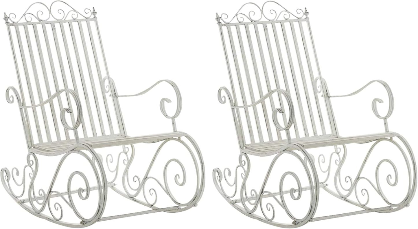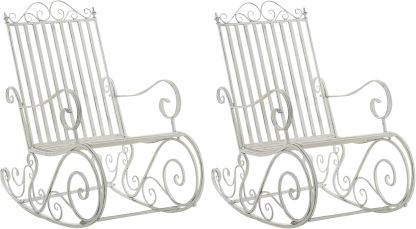 CLP Lot De 2 Fauteuils A Bascule en Fer Forgé Smilla I Rocking-Chair D'Extérieur avec Dossier Haut Et Accoudoirs, Couleur:Blanc Antique