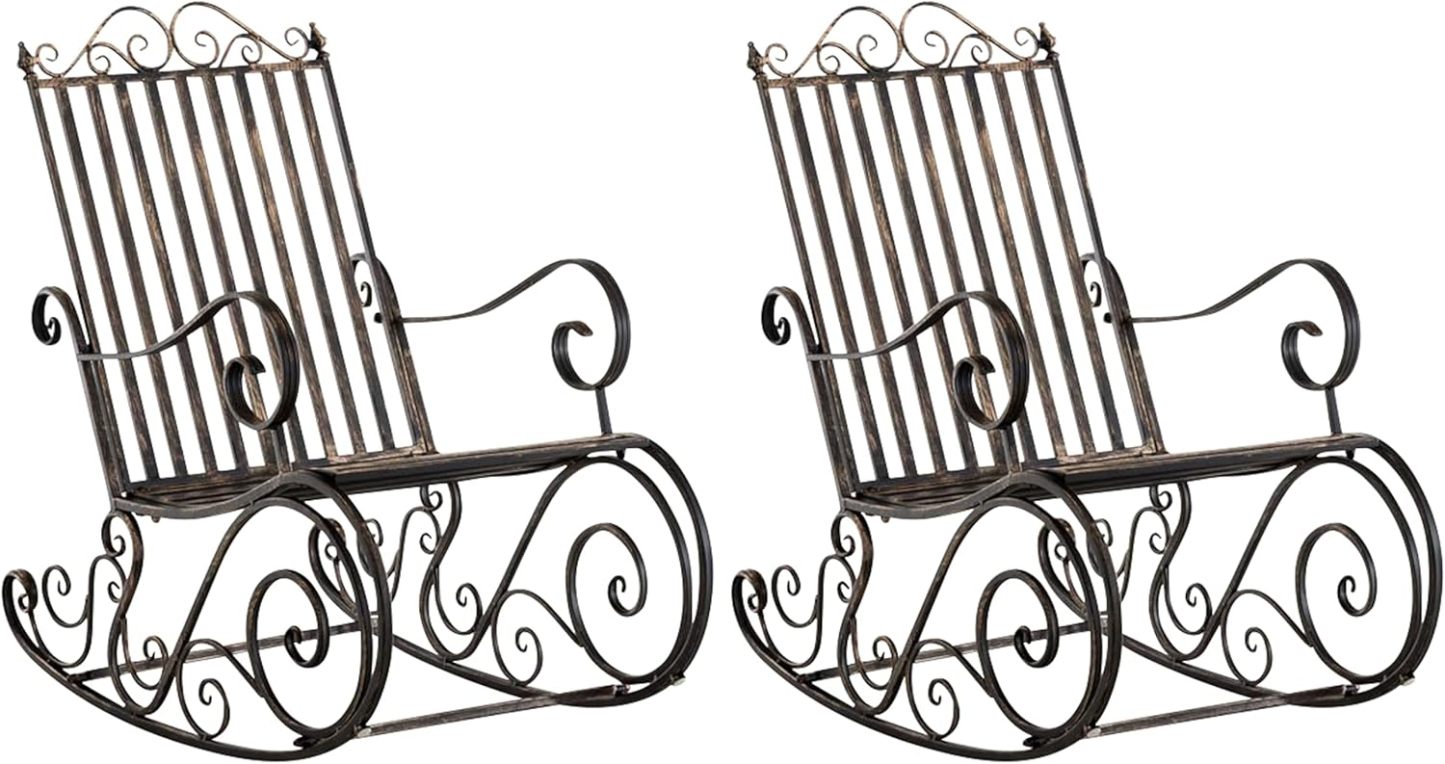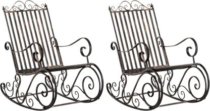 CLP Lot De 2 Fauteuils A Bascule en Fer Forgé Smilla I Rocking-Chair D'Extérieur avec Dossier Haut Et Accoudoirs, Couleur:Bronze