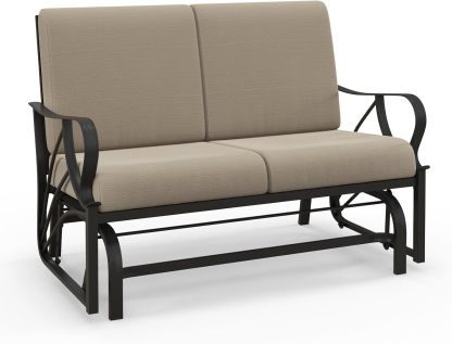 COSTWAY Banc à Bascule de Jardin avec Coussin, Fauteuil à Bascule en Métal avec Accoudoirs Incurvés, Chaise Berçante Ergonomique, pour Jardin, Cour, Porche, Terrasse