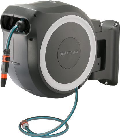 Gardena Enrouleur de Tuyau Mural Rollup XL Blanc - Longueur 35m - diamètre 13mm- Garantie 5 Ans- Dévidoir pivotant à 180°- Kit Complet avec Lance, raccord, Tuyau et Support Mural Inclus 18632-20