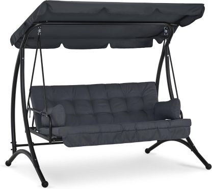 M MCombo balancelle Hollywood 3 Places avec Fonction de lit, avec Coussin d'assise Extra épais et Toit Solaire, balançoire de Jardin pouvant Supporter jusqu'à 300 kg, 202x125x173 cm 4095 Gris