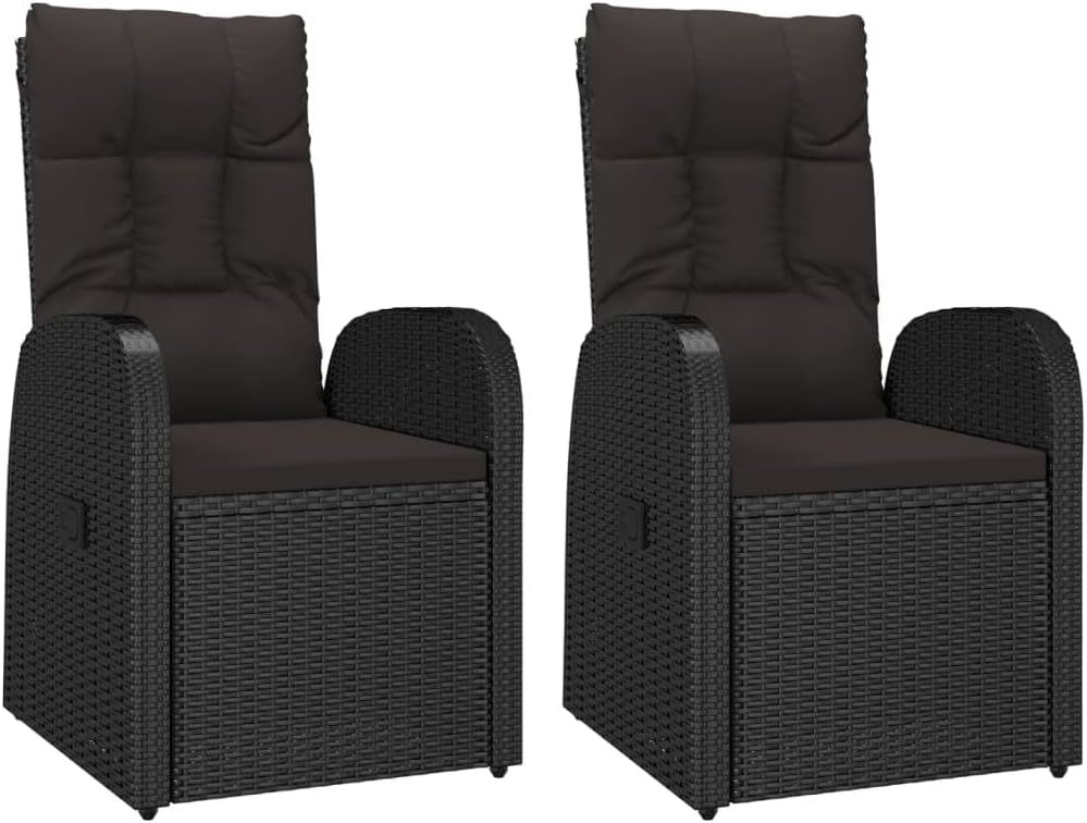 vidaXL 2X Chaise Inclinable de Jardin et Coussins Fauteuil d'Extérieur Chaise de Patio Terrasse Arrière-Cour Robuste Résine Tressée Noir